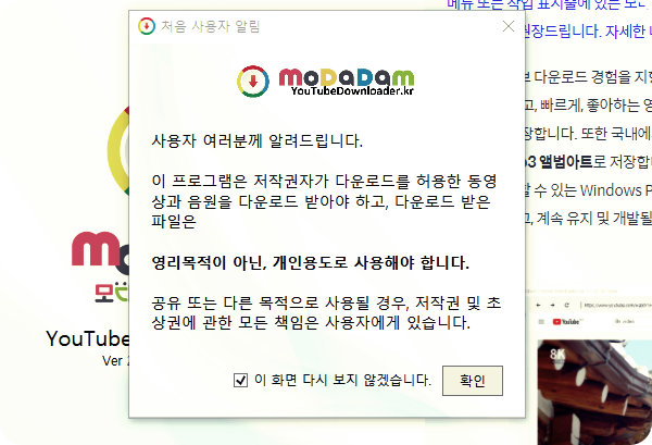 모다담 유튜브다운로더 사용기